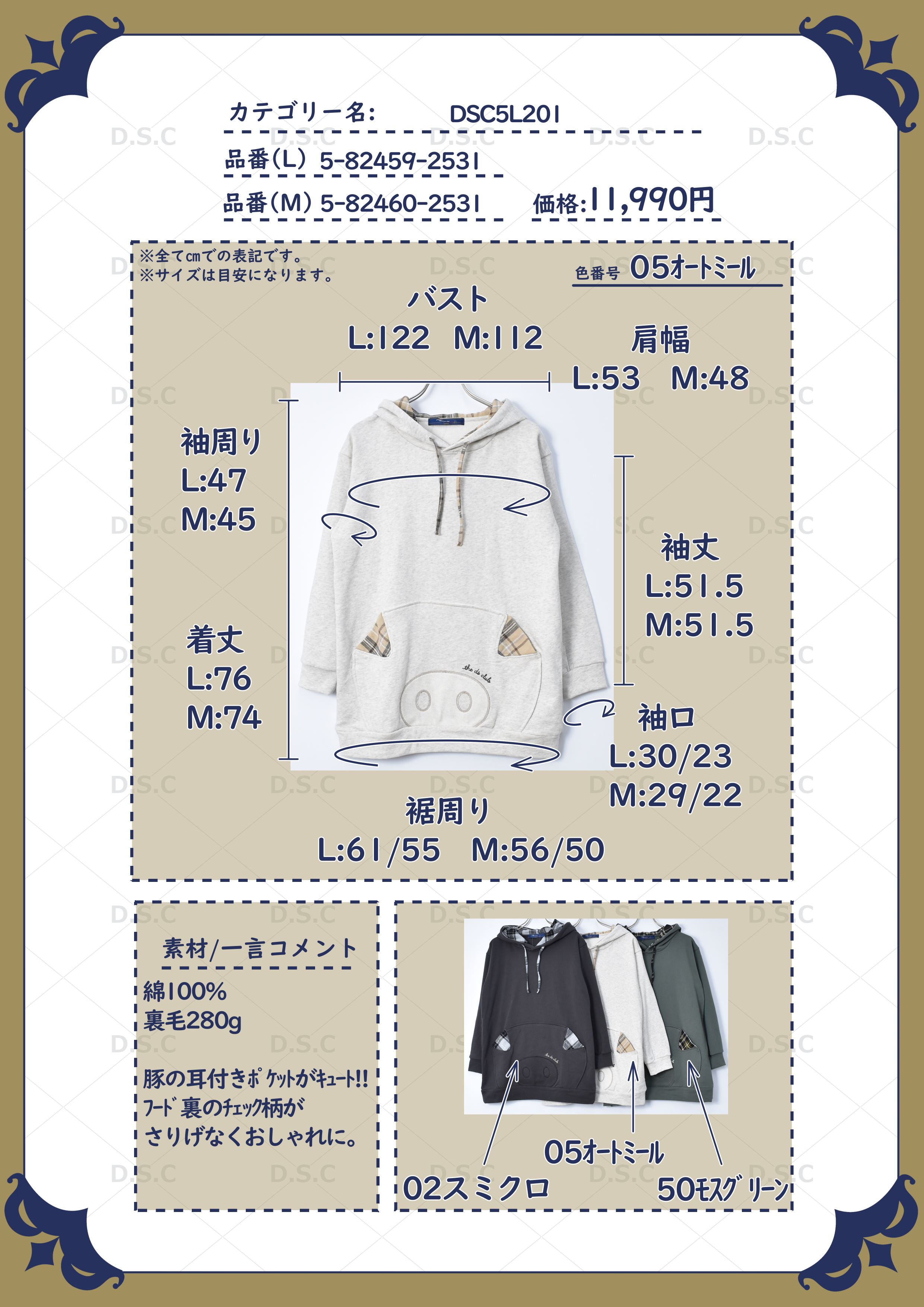 【パーカー / 裏毛】 BIGぶたポケット パーカー