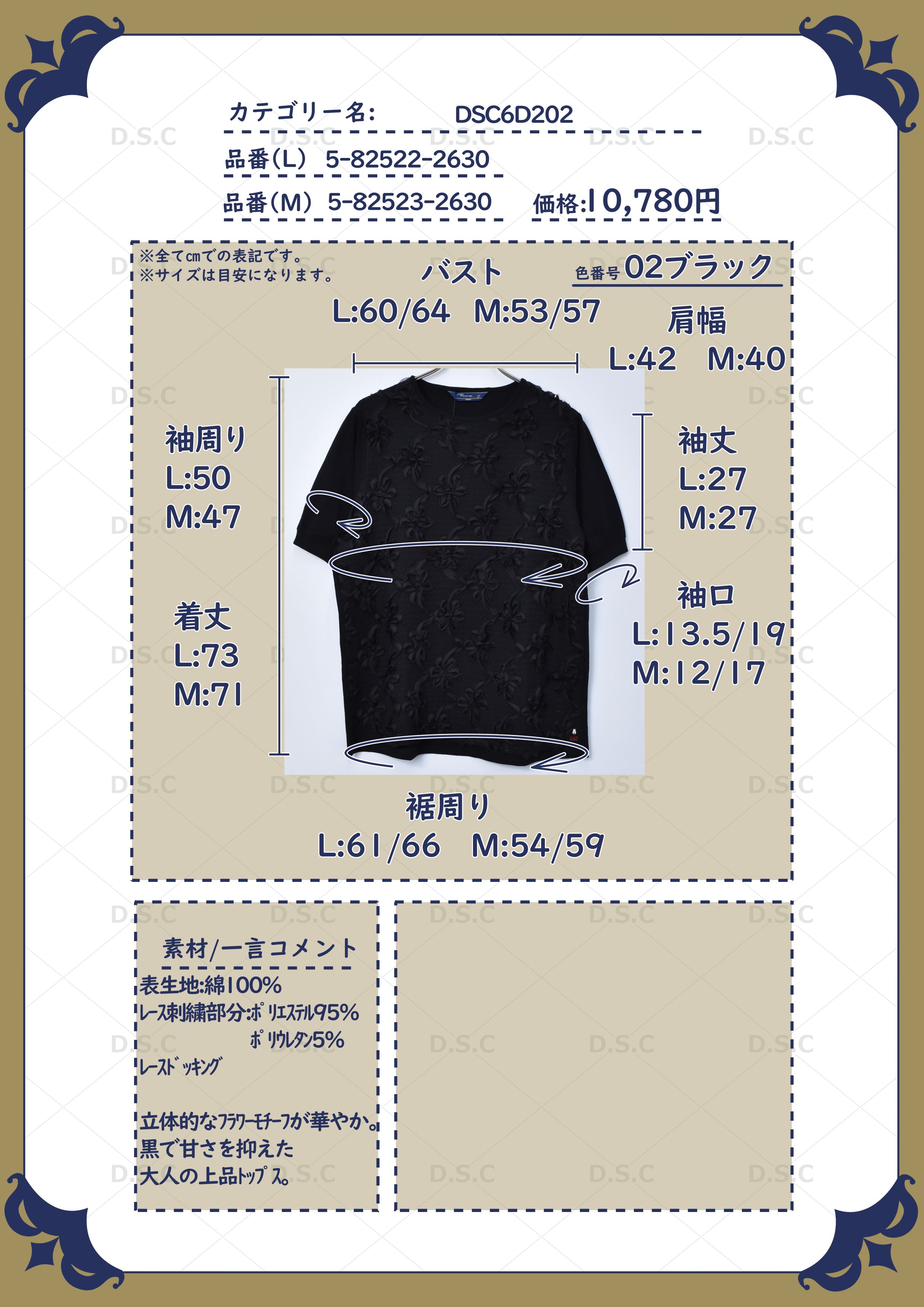【Tシャツ】 フラワー レースドッキング Tシャツ